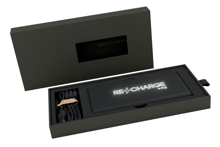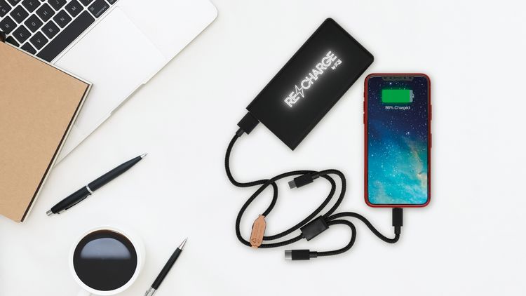 Power up your devices with this 10,000 mAh jumbo capacity wireless power bank. It features a soft-touch rubber finish with a light-up logo that illuminates with a slight shake of the power bank. Includes a 3-in-1 RPET charging cable, premium gift box, and 3-year warranty. Patent pending. Includes premium gift box 3-year warranty (excludes charging cable) Additional decoration charges may apply.