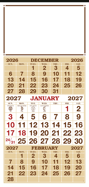 This commercial calendar provides a continuous view of past, present, and future months at a glance, making scheduling and planning easier than ever. The previous and upcoming months are displayed in brown, allowing the current month to stand out in white for quick and clear reference. The SFI® label means that materials used for this product have been responsibly sourced. Additional decoration charges may apply.