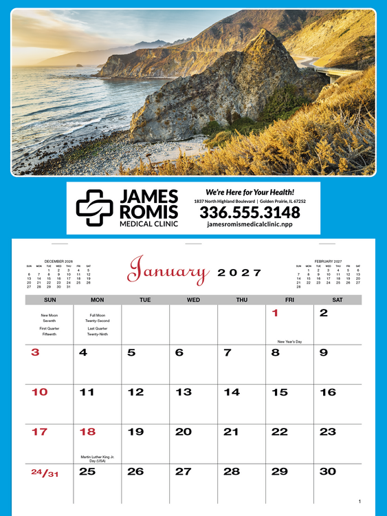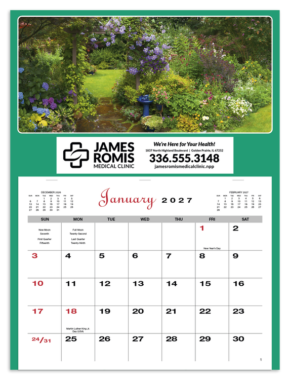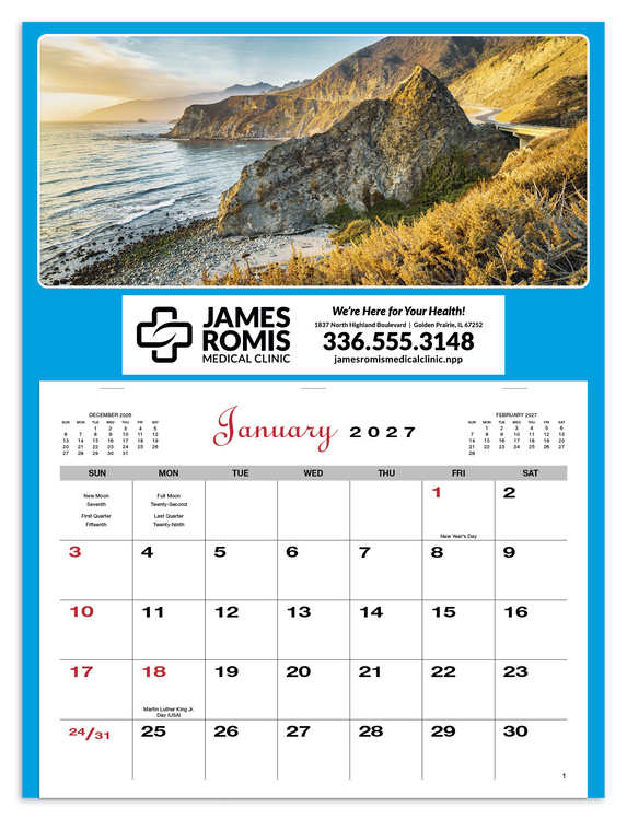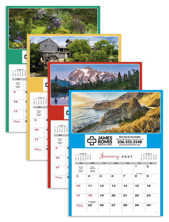 Offer a touch of variety and a pop of color with these affordable appointment calendars. Choose your favorite picture or mix it up in multiples of 25. The SFI® label means that materials used for this product have been responsibly sourced. Additional decoration charges may apply.