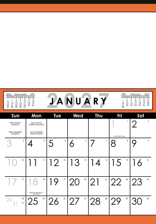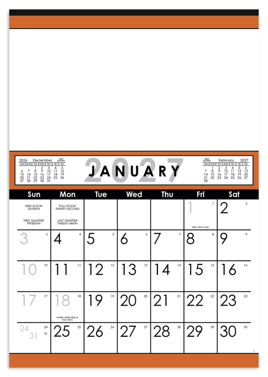 Stay organized and on top of your schedule with this large-format 12-sheet calendar. Its clear, easy-to-read numbers and spacious layout ensure that important dates are visible at a glance, keeping you efficient and focused all year long. The SFI® label means that materials used for this product have been responsibly sourced. Additional decoration charges may apply.