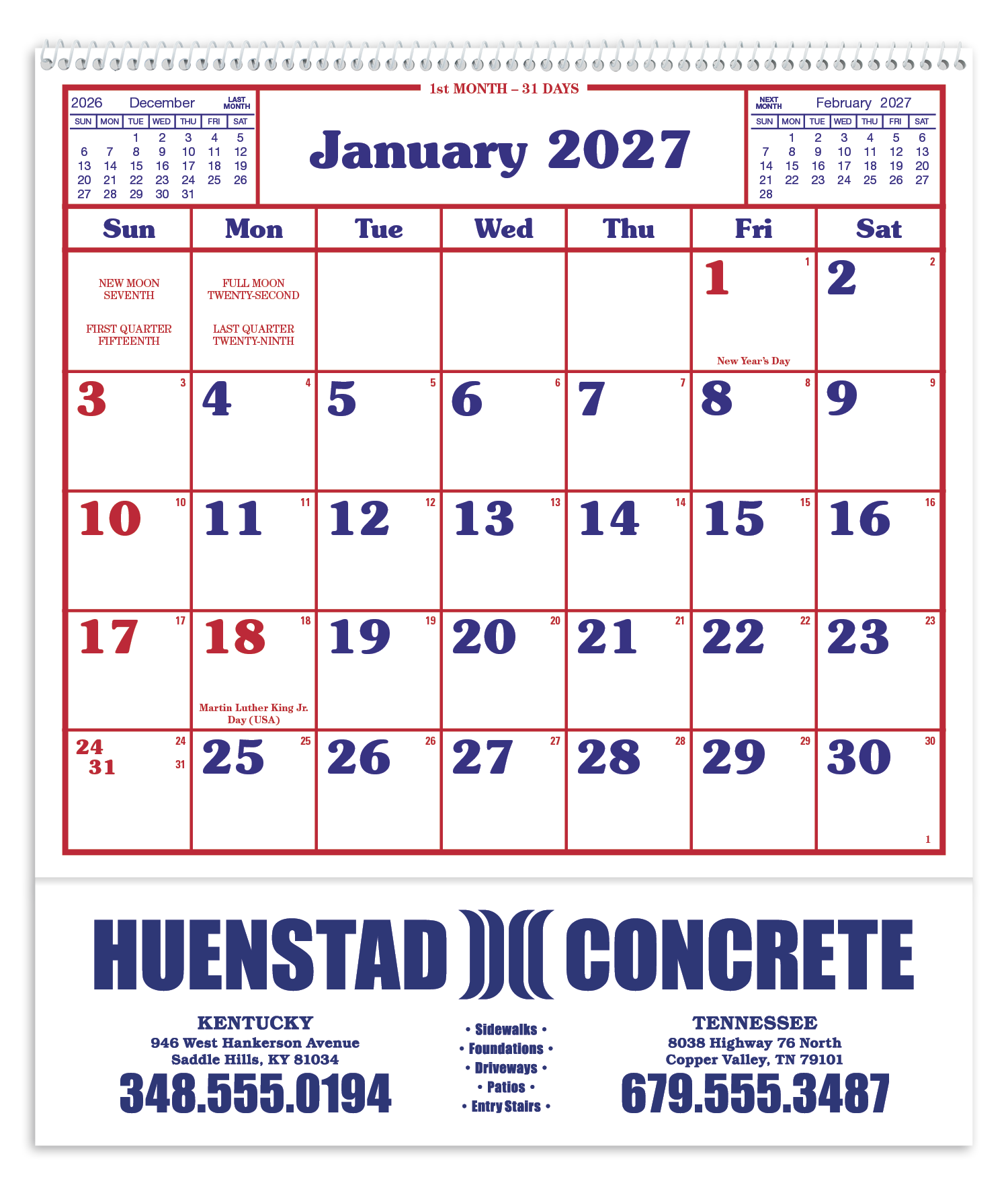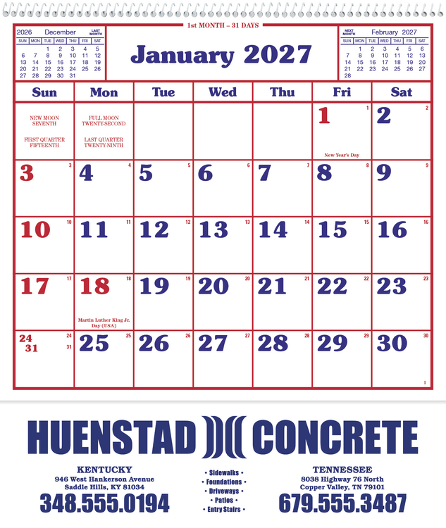 Skinner & Kennedy Contractor's 12-Sheet Calendar