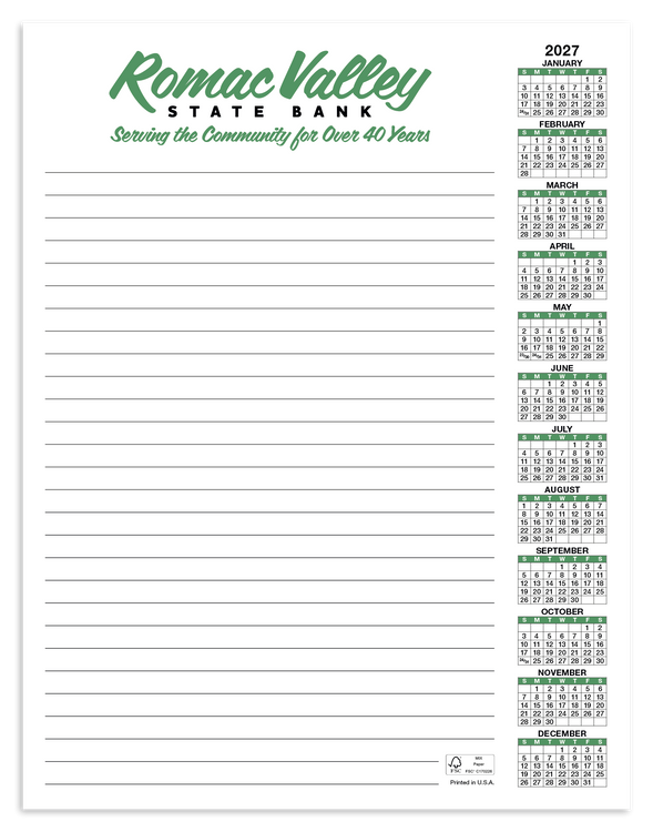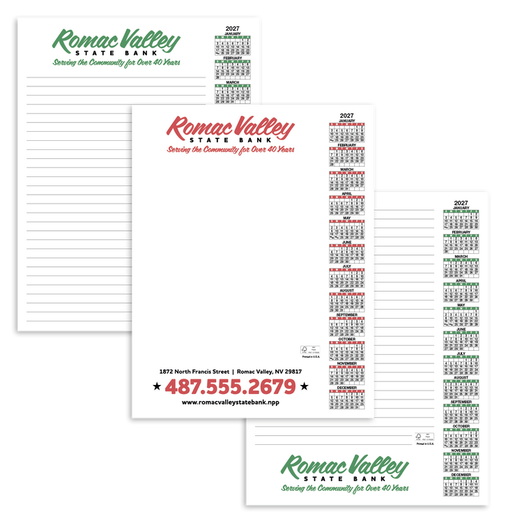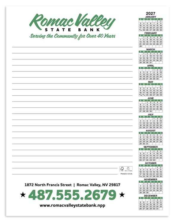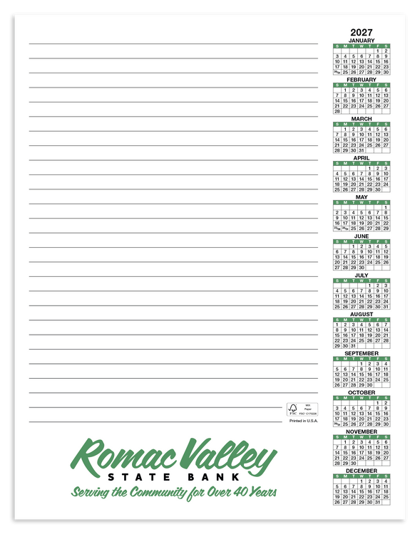 This conveniently-sized 50-sheet scratch pad is perfect for note-taking, planning, and more. Each sheet displays the full calendar year, so you’ll always know the date. The FSC® label means that the materials used for this product come from well-managed FSC®-certified forests and other controlled sources. Additional decoration charges may apply.