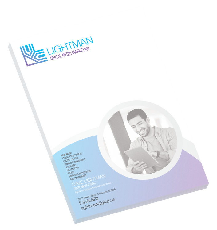 Make your list and check it twice. This must-have notepad is perfect for home, school, or office. The FSC® label means that the materials used for this product come from well-managed FSC®-certified forests and other controlled sources. Includes an 18 pt. cardboard backer Full bleeds available Made in USA Additional decoration charges may apply.