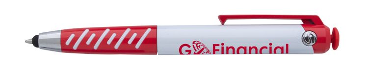 Unleash your creativity and relieve stress with this innovative twist-action pen designed with a playful joystick on the top that quietly keeps your hands busy. Deep hues on the clip, plunger, and comfortable rubber grip offset the white barrel of this versatile ballpoint. Equipped with a precise 1mm medium ballpoint and a handy stylus, it’s the perfect tool for both writing and relieving nervous energy without disturbing those around you. 60% of overall product is made of post-consumer recycled ABS plastic. Covered by U.S. Patent Nos. 8,847,930; 9,092,077 Additional decoration charges may apply.