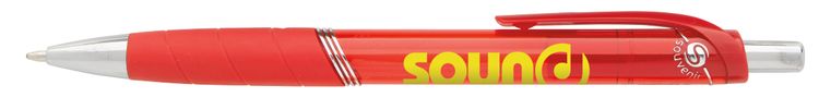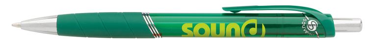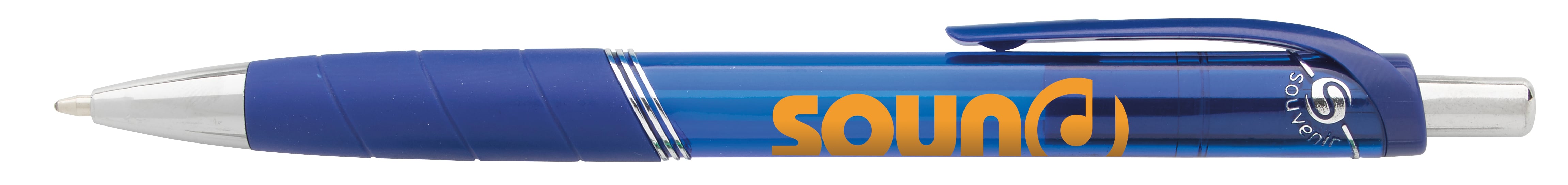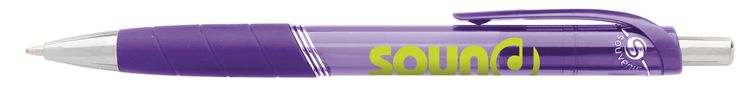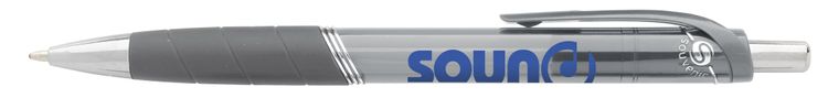 The Souvenir® Rayley Pen brings both style and function to your desk. The sharp silver accents pop against its translucent barrel, while the rubber grip makes it comfortable to hold. Additional decoration charges may apply.