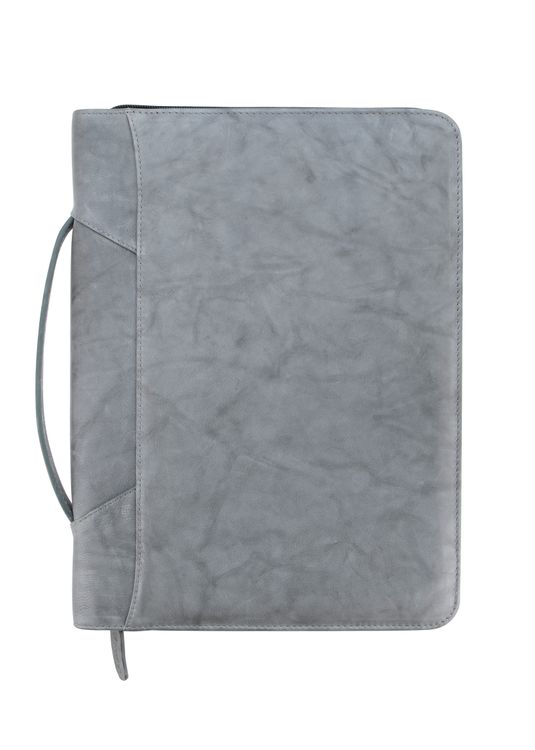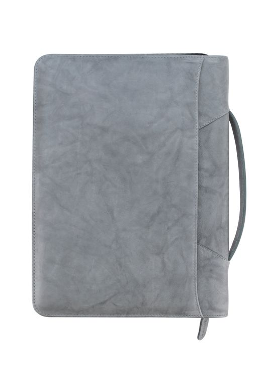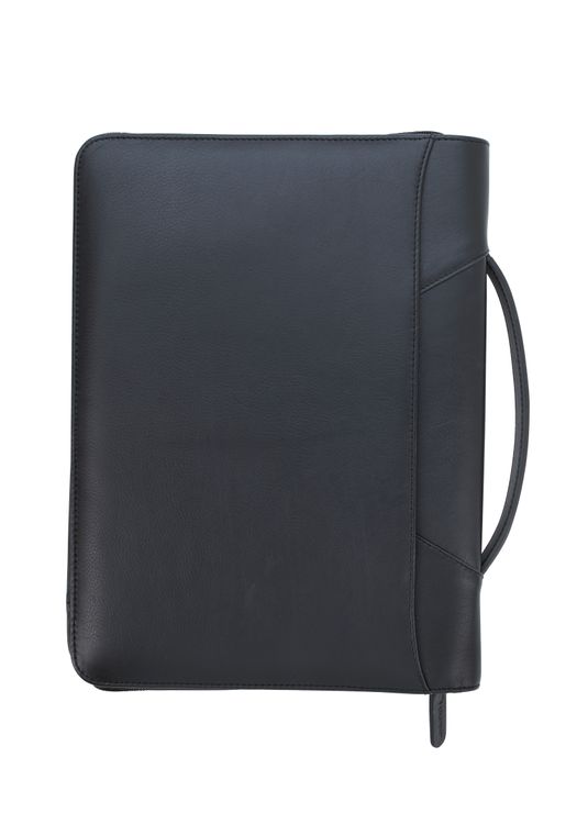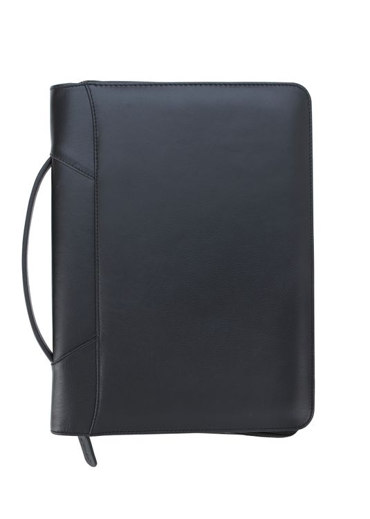 Genuine leather zippered padfolio with soft fabric lining