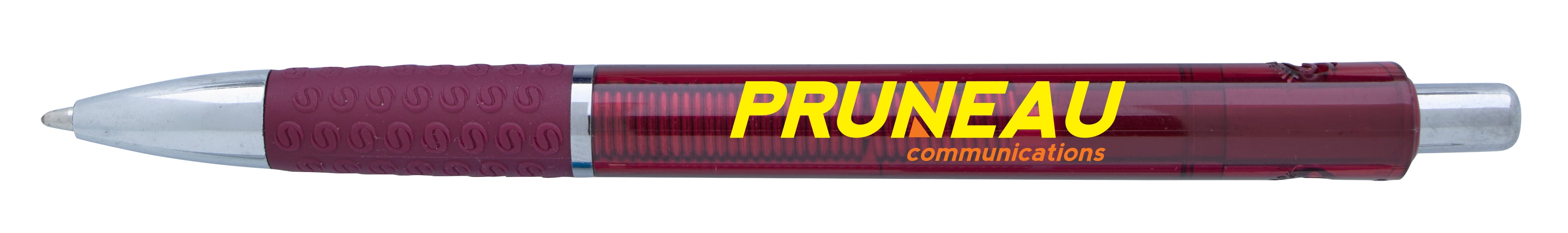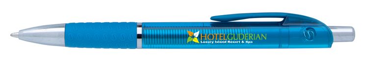 The Souvenir® Translucent Image Grip Pen combines an industrial aesthetic with trendy colors and a visible weighted spring through its translucent barrel. Its bold feel pairs well with the 1.2mm ballpoint cartridge, allowing you to write with confidence. Additional decoration charges may apply.