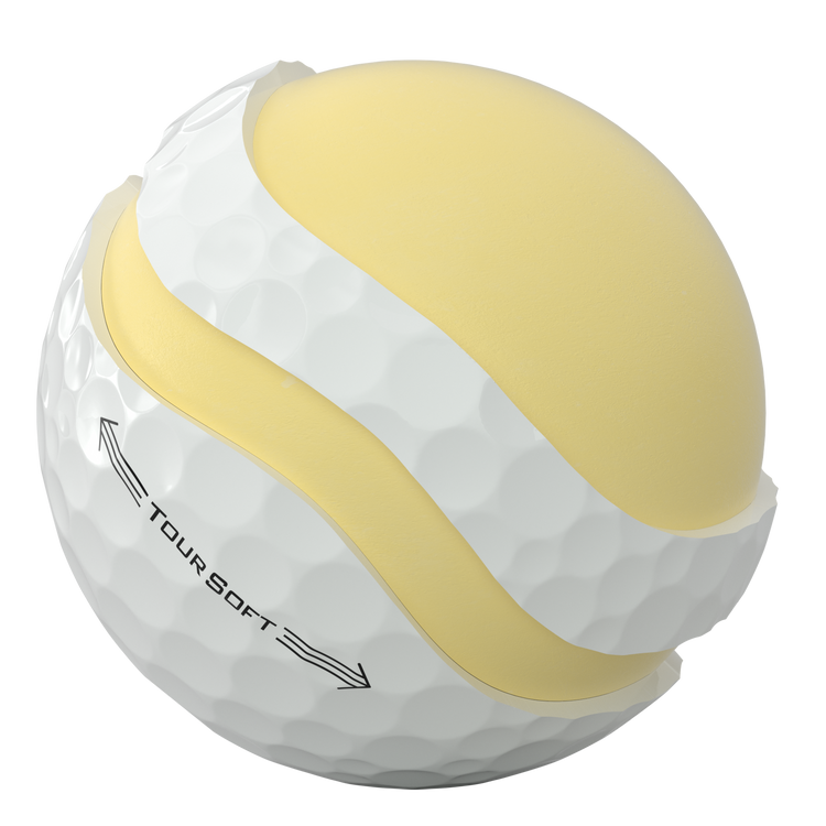 The Tour Soft golf ball is a complete combination of distance, stopping power, and soft feel. Ball features longer distance off the tee and increased spin into the green. For Canada factory direct, see 80167 white ball and 80168 yellow ball. Additional decoration charges may apply.