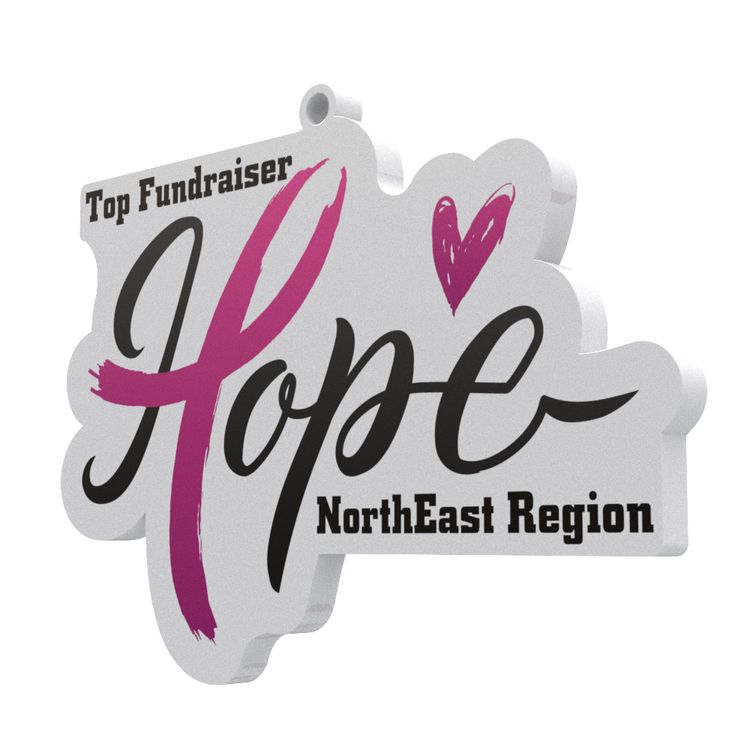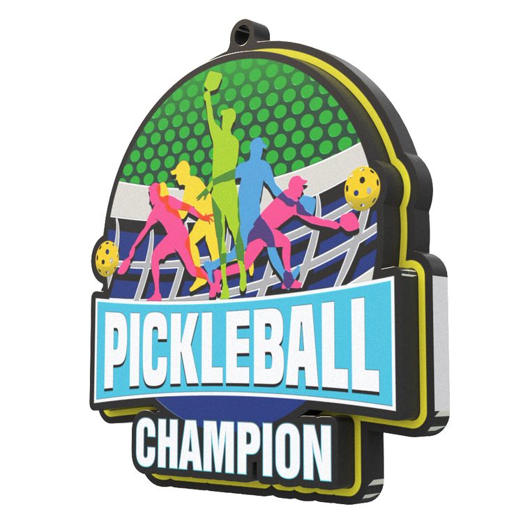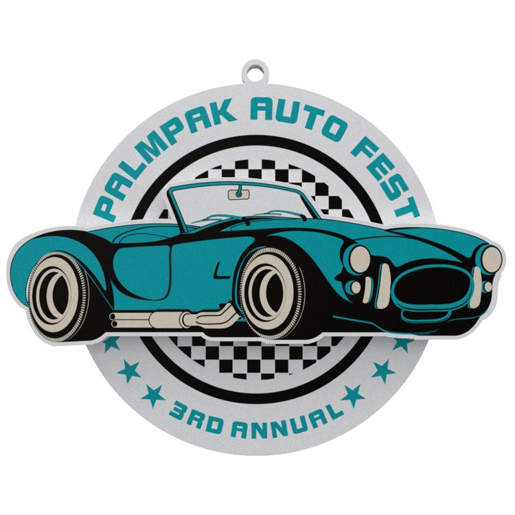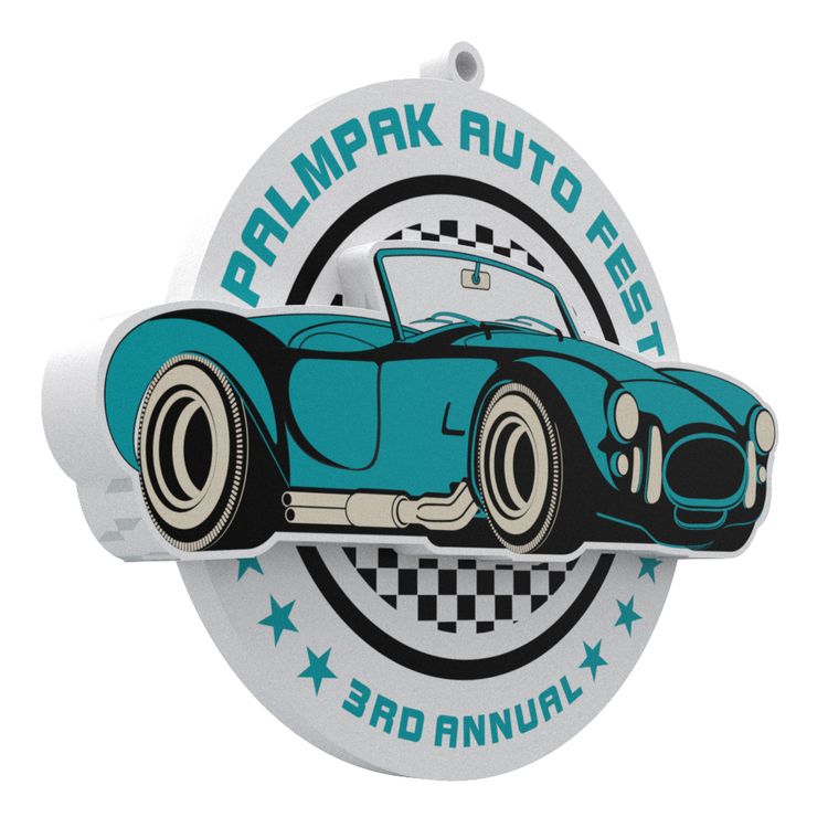 Elevate your awards with the Express Foam Champ Chain. Two customizable layers, up to 64” sq inches, custom shaped, made in the USA in just 5 production days. The material is technically called “PVC Foam”. It has a pleasant and high-quality textured feeling. Even though it is called “foam” it is extremely firm and will bend only slightly under pressure. Material comes in both black or white colors. These colors will show on the sides & backs and anywhere on the artwork that is left unprinted. So the color should be chosen based on what will look best with your client's artwork. You have two levels to customize your chain: The 1st level is the base or bottom layer. This is where you’ll want to add background elements or foundational design elements as this layer serves as the jumping-off point of your design. This is also the layer where the eyelet will be attached. The 2nd level is the top layer. This is where you’ll want elements that you need to “pop” off the design, like the client's logo. As this part literally sticks out from the base layer.