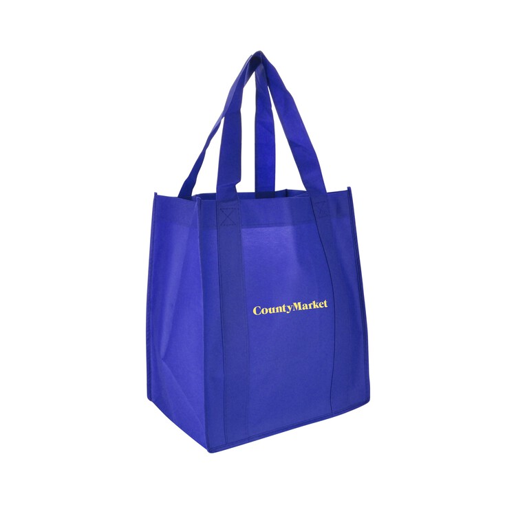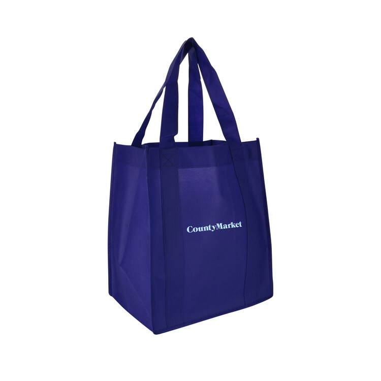 Non-Woven, 80 gram shopping tote bag has water-resistant polypropylene coating. At 13"w x 15"h with a 10" gusset (matching covered bottom insert) with a 22" handle for easy carrying, it's the perfect size for food shopping/farmers markets, carrying books, beach goers, etc. These bags are both reusable and recyclable and are far better for the environment than plastic or paper bags.