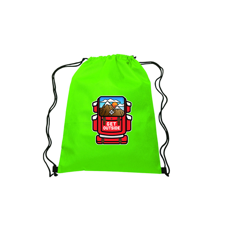 Non-Woven, 80 gram drawstring bag has water-resistant polypropylene coating. At 13"w x 16.5"h, it's the perfect size to fit into many different spaces and is a dependable option for anyone who wants to pack their essentials and take them anywhere with ease. Great for campus events/school pride, charities/fundraising, outings at the pool, travel and so much more.