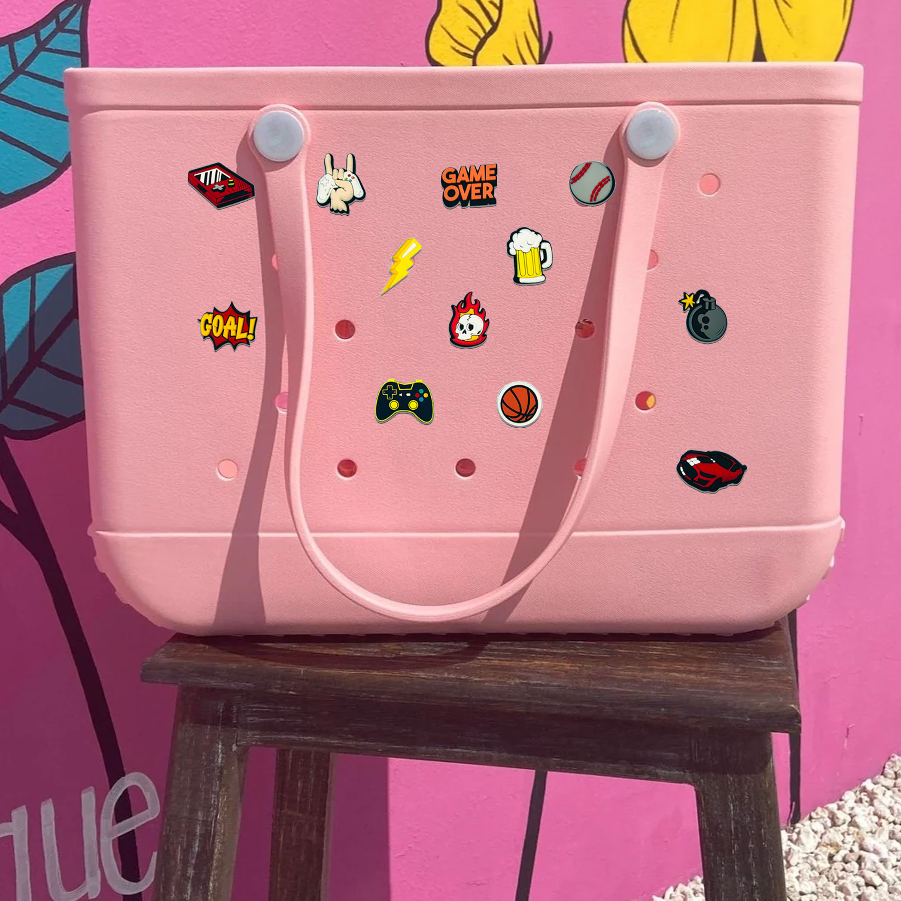 These decorative, full color PVC accessories snap into the holes beachcomber beach bags. Create your own custom design that adds flair and personality to items for children and adults. Option to add a full color header card that holds 1 to 4 charms. The 0.6" button on the back of the charm locks the accessory in place. Overseas Item, Does Not Qualify For EQP. 12-20 Days after proof approval, Air Freight: 7-10 Days. MOQ 100 pieces per mold each additional design requires additional setup fee.