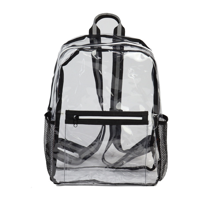 Grab and go with this easy to see and easy to find Clear Backpack! It's the perfect size to fit into many different spaces and is a dependable option for anyone who wants to pack their essentials and take them anywhere with ease. Great for sporting events, campus events/school pride, charities/fundraising, outings at the pool, travel and so much more. Material: 25C TPU, 600D Polyester
