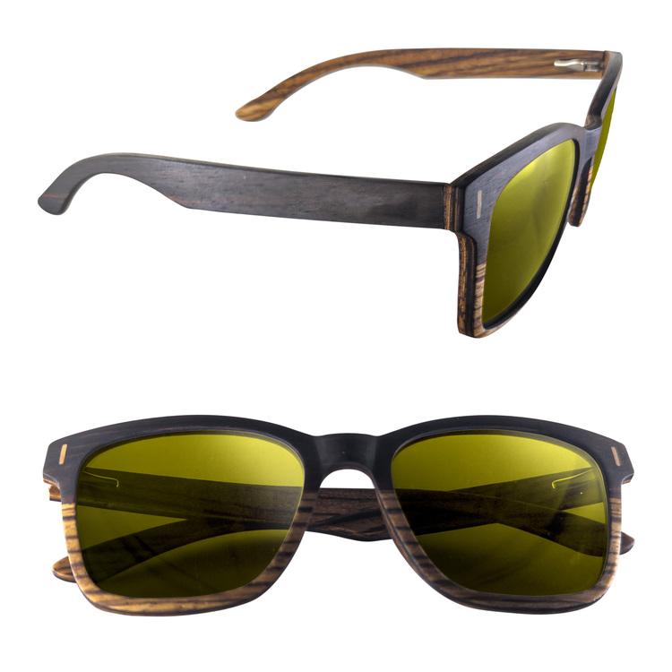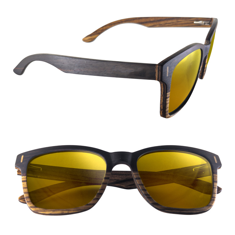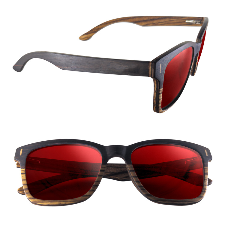 These Dual Tone Wood Sunglasses ensure your fundraiser, gala, event or promotion is memorable. These sunglasses will be the go-to fashion accessory year-round due to the beautiful two tone wood design on the frame, sleek wood arms and your choice of mirrored or polarized lenses in a variety of colors. Each arm can be customized with laser engraving to provide brand visibility. Besides being stylish, these glasses have UV400 rated lenses for maximum UVA and UVB protection against the sun's rays.