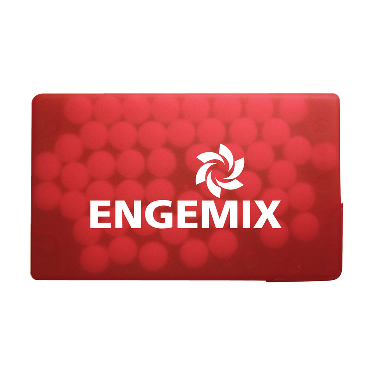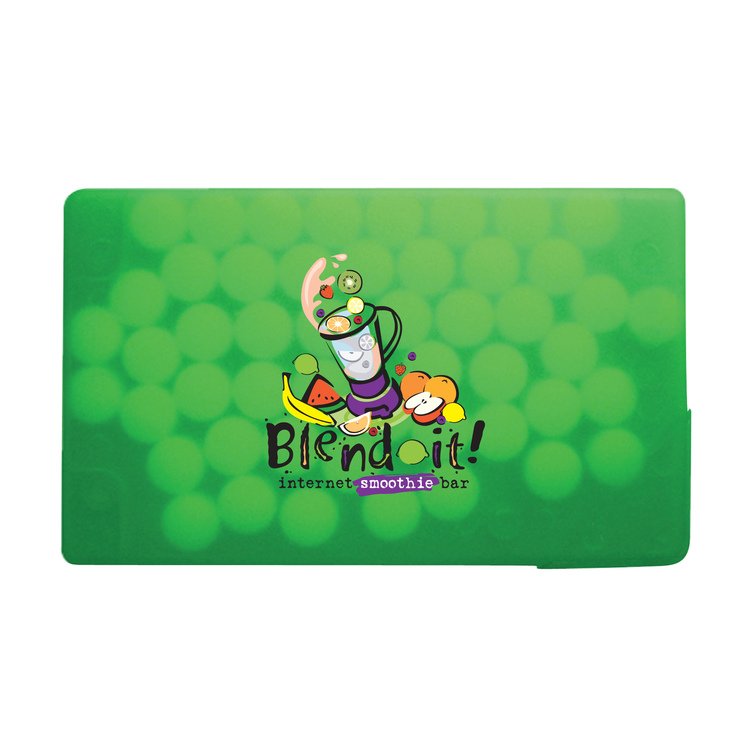 Pouch and credit card mint dispenser have a full color decal or direct imprint