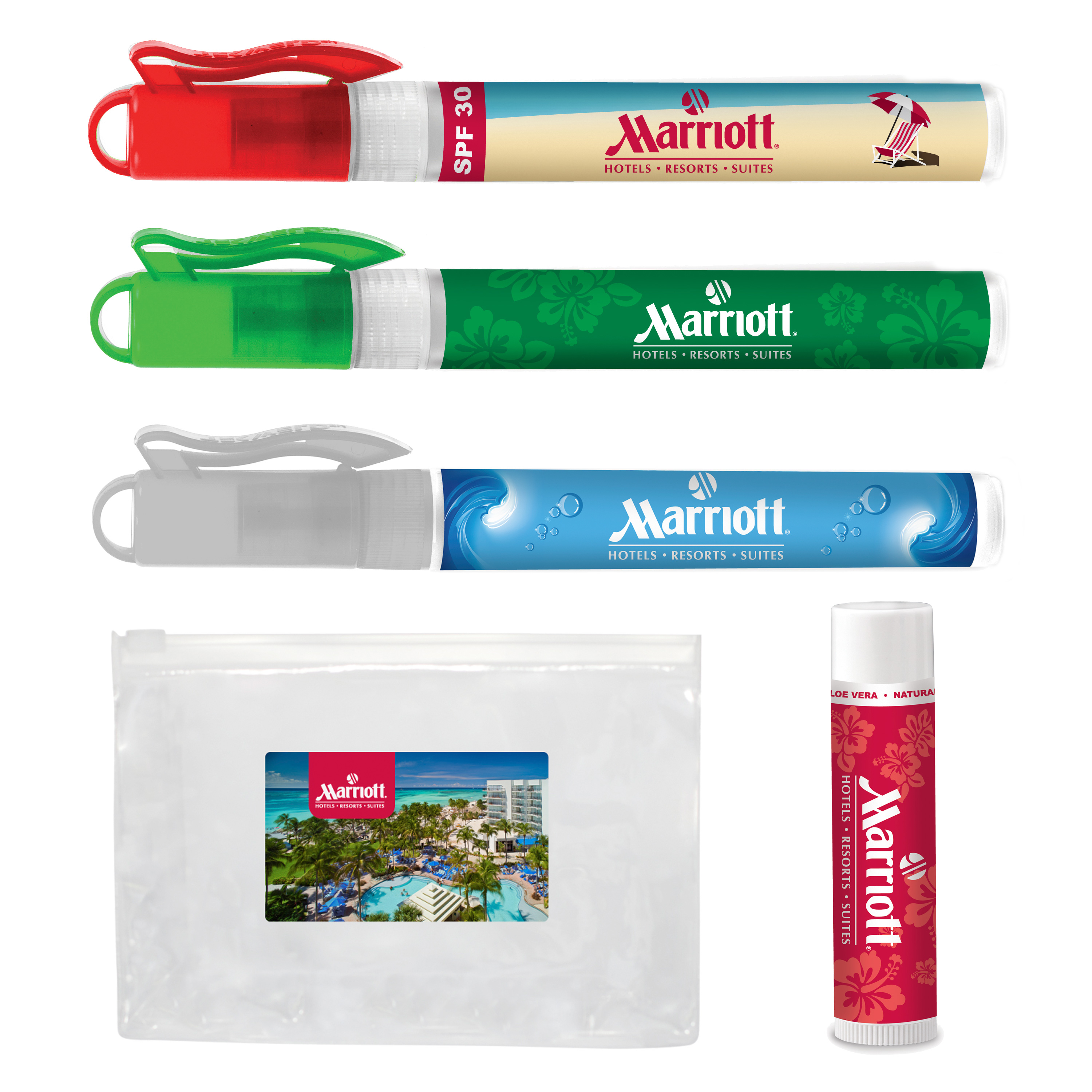 Be prepared for a day of fun in the sun with our custom imprinted Fun in the Sun Beach Kit. Containing all of the items you may need for any outdoor event, the sun is no match for this Beach Kit. Don't let UV Rays ruin your day, instead, let your brand have the last say with our Fun in the Sun Beach Kit. The setup charge includes a full color imprint on each of the included items & a full color label on the bag. Imprints on each item are with no addt'l running charges for optimal brand exposure.