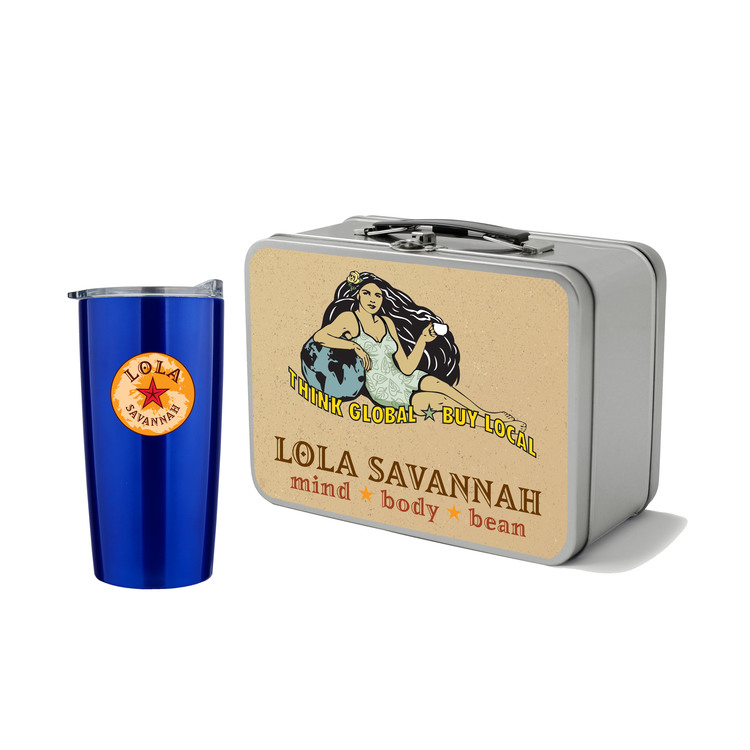 Includes a 20 oz. stainless steel tumbler in a metal lunch box
