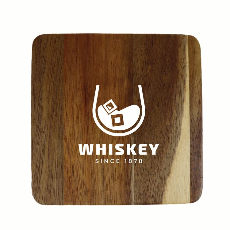 This is a great 2-in-1 accessory for entertaining. The beautiful wood design matches a variety of home decor styles. The coaster has 15.5 square inches of surface area to accommodate any drinkware. Your brand message is prominently displayed on the top and the back has a built-in recessed bottle opener. The corners on the bottom feature non-slip pads that also protect table surfaces.