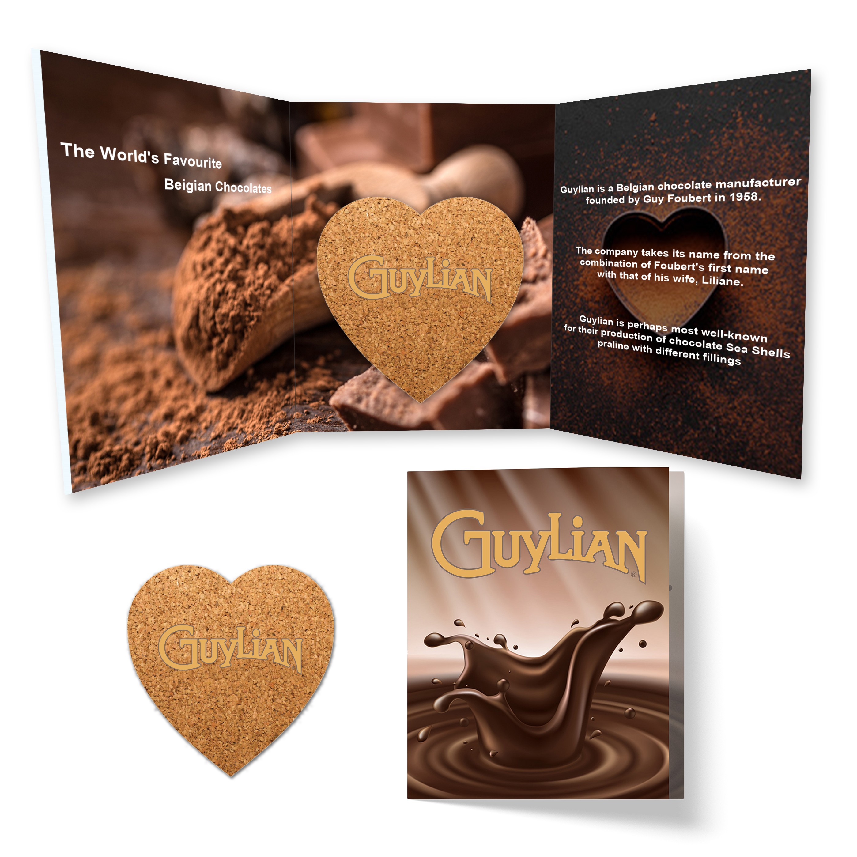 Fully customized booklet includes imprint on both sides of the card with full-color process and direct print on a Heart Shaped Cork Coaster. This unique product allows you to further your promotional outreach by adding a coupon, QR code, website and so much more. Share your story with these Tek Booklets. Double fold only.