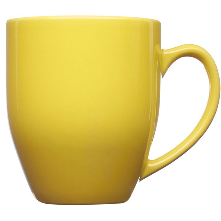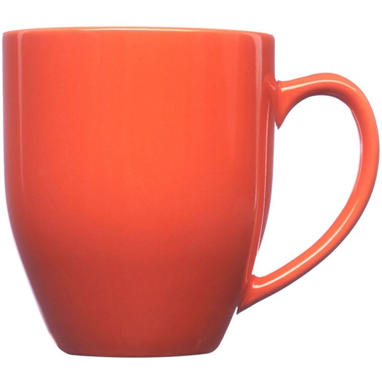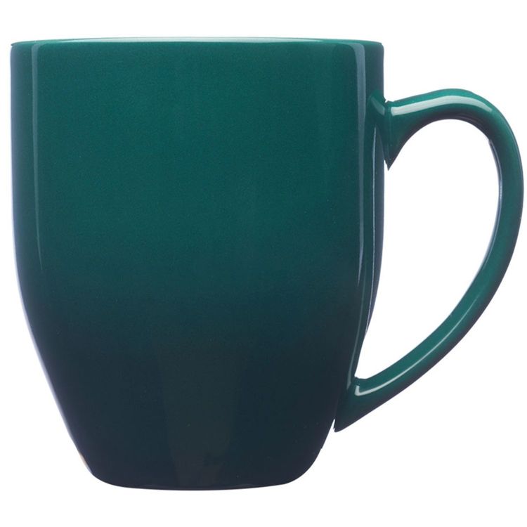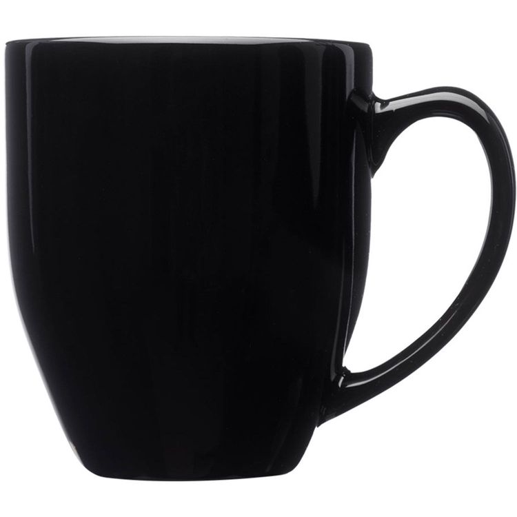 The 16 oz. bistro wide coffee mug holds well and is ideal for everyday use with your favorite coffee or tea. It features a smooth rim, glossy finish, curved grip, and a tapered bottom with a glossy-colored exterior finish.