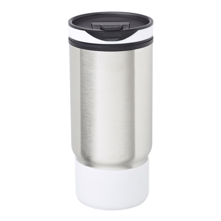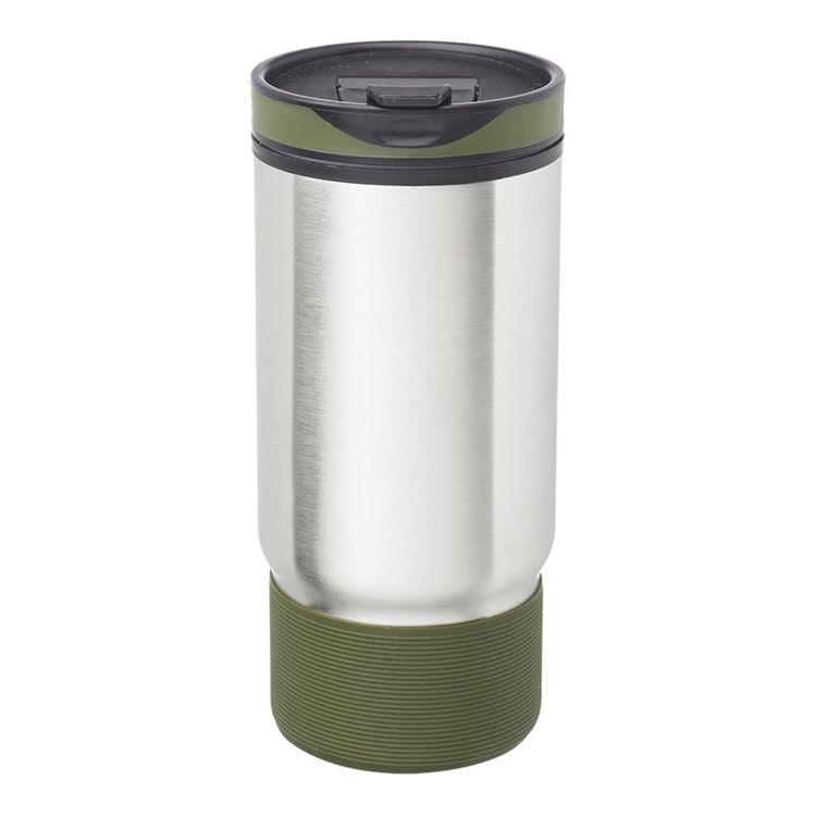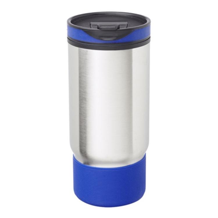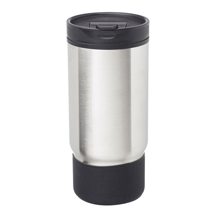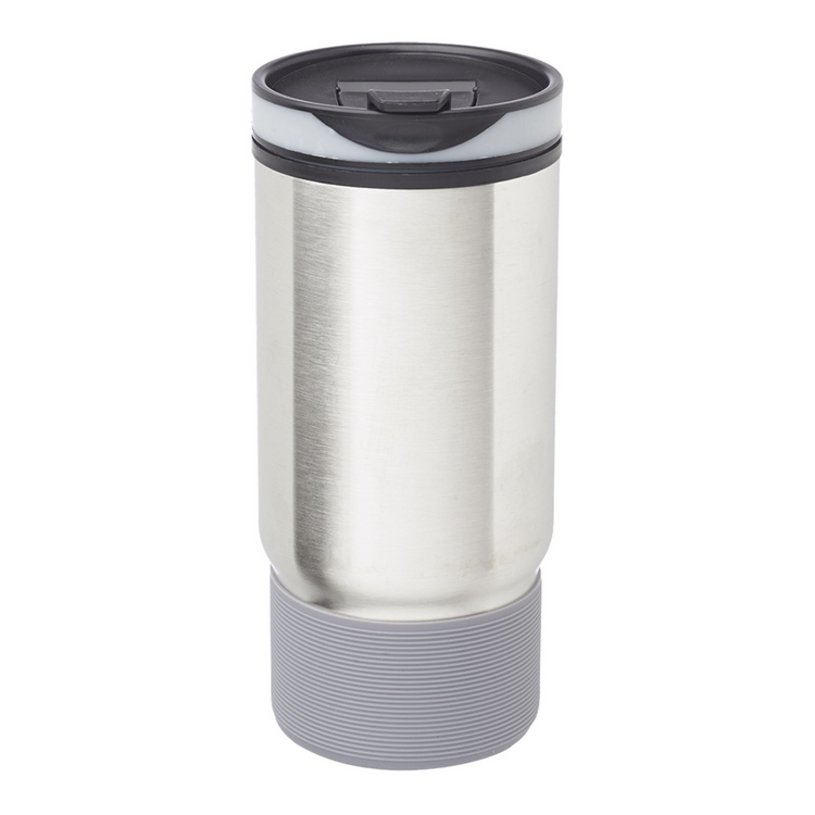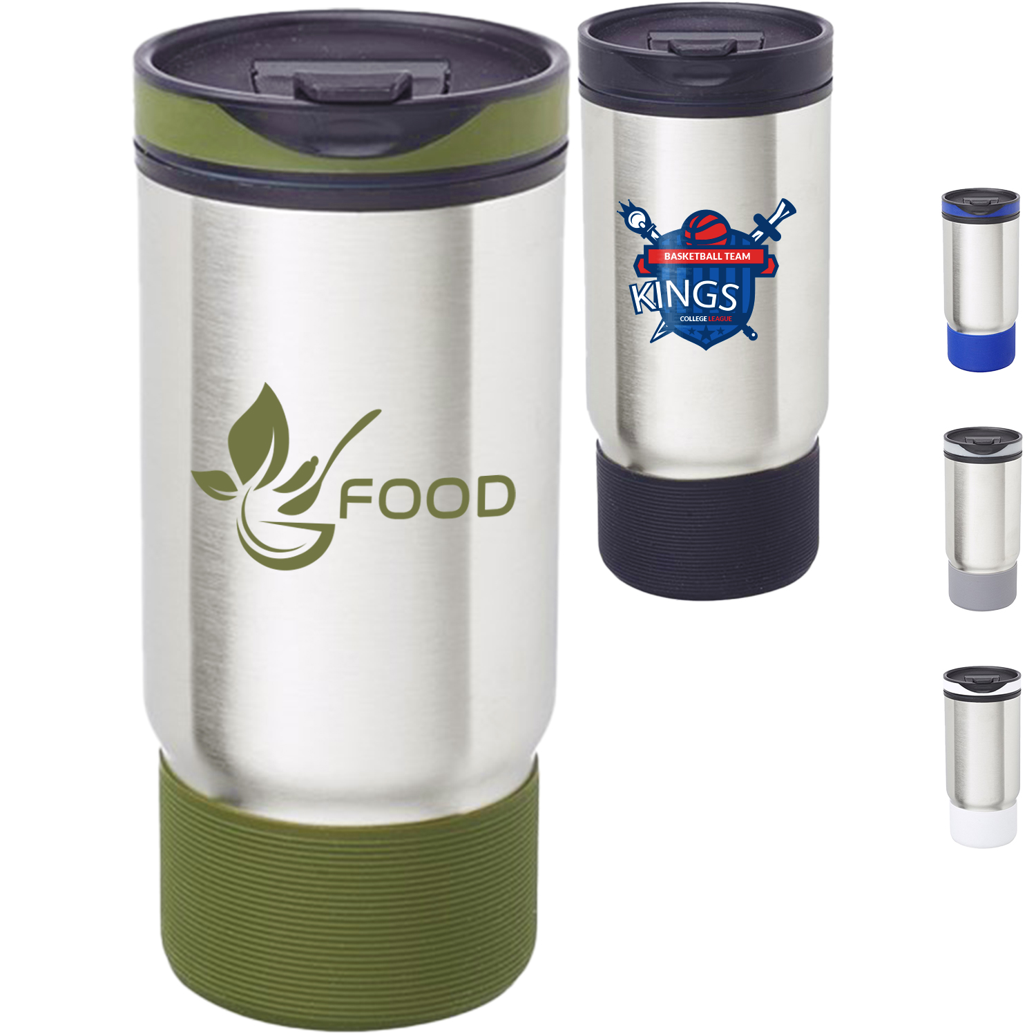 Wow your Customers with our 17 oz. Stainless Steel Travel Mugs. Made of high-quality Stainless Steel, this trendy travel mugs offers Black Plastic Flip Closure Lid. This popular travel mug measures 3" W x 6.5" H and features a large imprint area of 2.5" W x 2.5" H ideal for maximum brand exposure. These practical travel mugs are the perfect way to gain visibility at company picnics, marathons, football, baseball, trade shows, and more!