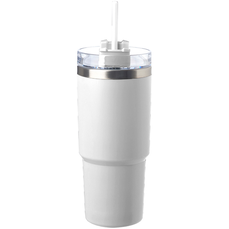 Premium 30 oz TiTUS® Double Wall Stainless Steel Insulated Travel Mug with Straw & Handle