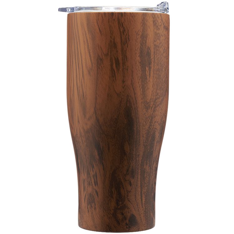 27 Oz Stainless Interior / Exterior Striped Steel Tumbler w/ Clear Push Lid & EVA Pad