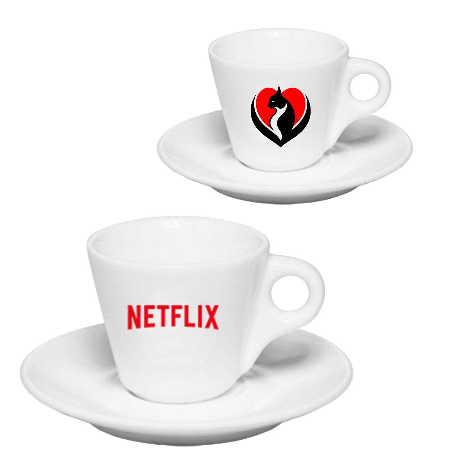 Advertise your brand with our 2.75 oz.Espresso Porcelain Cups with Saucer Sets. Measuring at 2.25" H x 2.5" Rim x 1.6" Base, this also features a large imprint area of 1.75" W x 1" H ideal for maximum brand exposure. It's Made from white Porcelain, Cup and Saucer is included. Order these trendy Cups and promote your brand like never before!
