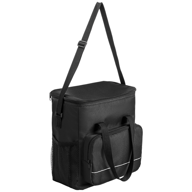 Crafted from durable 600D polyester with an aluminum coating, this bag is built for long-lasting performance and reliable use. It features a spacious main compartment with a secure zipper closure to keep your essentials safe and organized. Two convenient side mesh pockets provide easy access to bottles or small accessories. Designed for comfort and versatility, the bag comes with sturdy 1-inch double handles and an adjustable strap, making it easy to carry wherever you go.