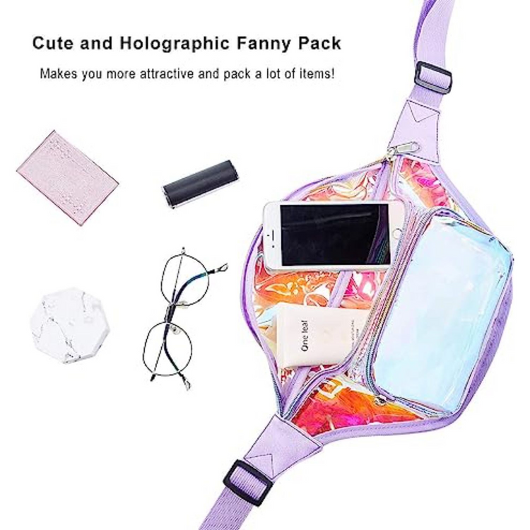 Clear PVC Iridescence Waist Bag Stadium Approved Fanny Pack