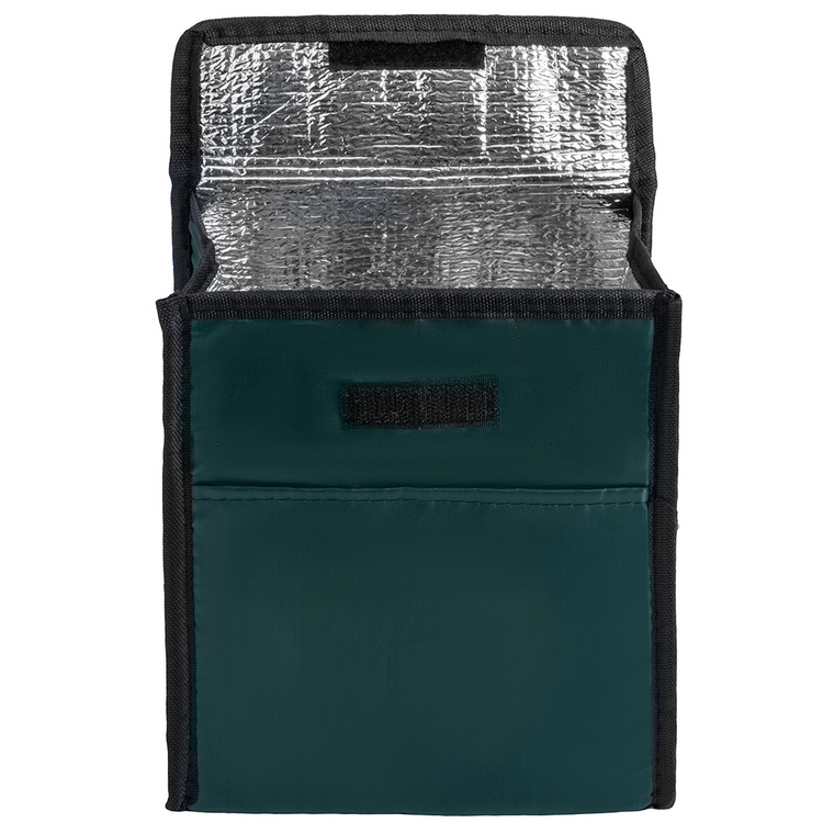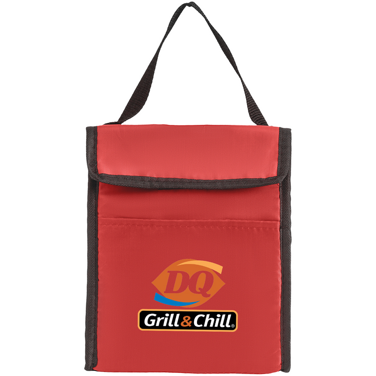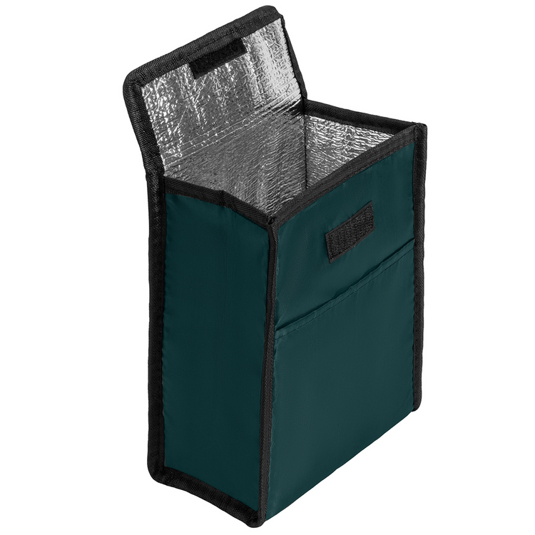 Food Safe Foil Lining Polyester Lunch Bag, available in many colors! These economy lunch bag measures 7"W X 10"H X 4.5" and is made of 210D Polyester. It has a practical hook and loop closure, a rectangular upright design with inner insulation for the coolest, freshest meal on the go. It also has a large imrpint are - 4"W X 3"H. To produce the ideal summer time gift for campers, hikers, and hunters, imprint with your brand.