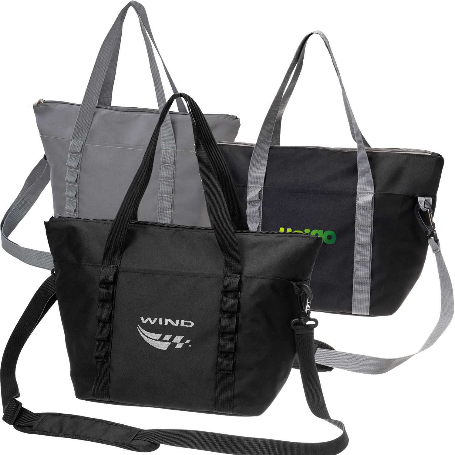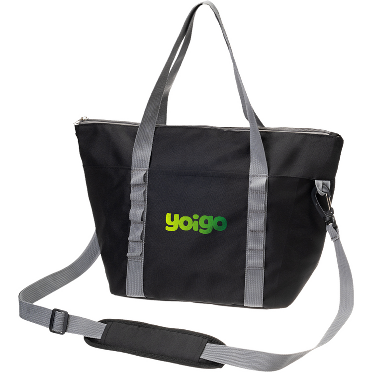 Carry your essentials with style and functionality using this durable cooler tote. Made from sturdy 300D polyester with a PU coating, it’s built to withstand daily use while keeping your items protected. The interior features an aluminum film woven lining that provides excellent insulation to maintain food and beverage temperature. Designed with a spacious main zippered compartment and convenient open-ended front and back pockets, it offers plenty of storage options. Comfortable braided belt handles and a detachable crossbody strap give you versatile carrying choices. Perfect for customization through screen printing or heat transfer, this tote makes an ideal promotional item or personal accessory.