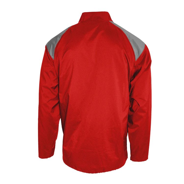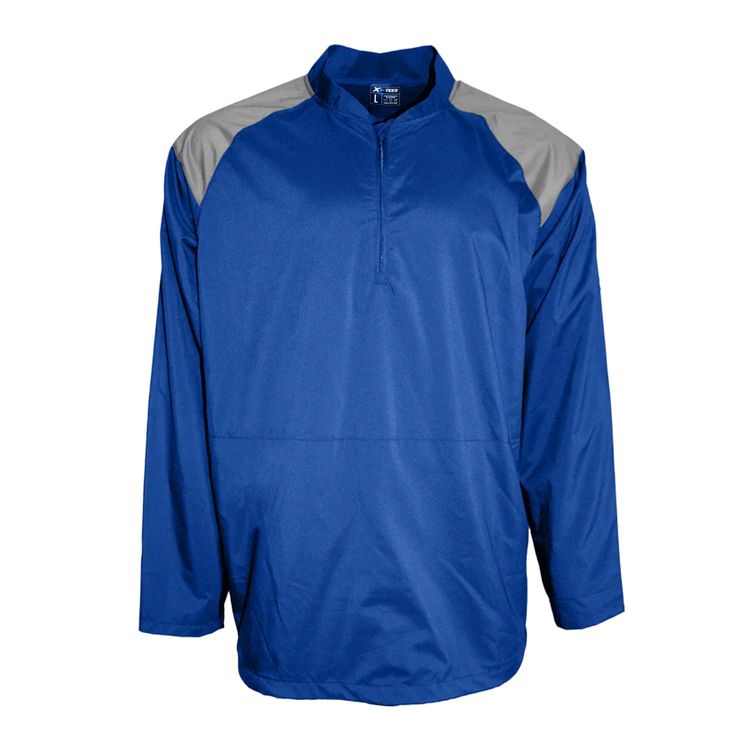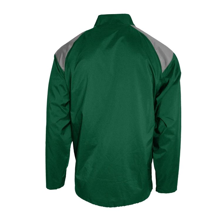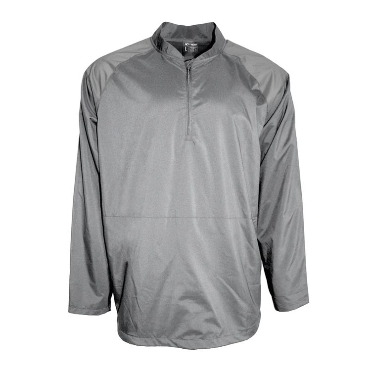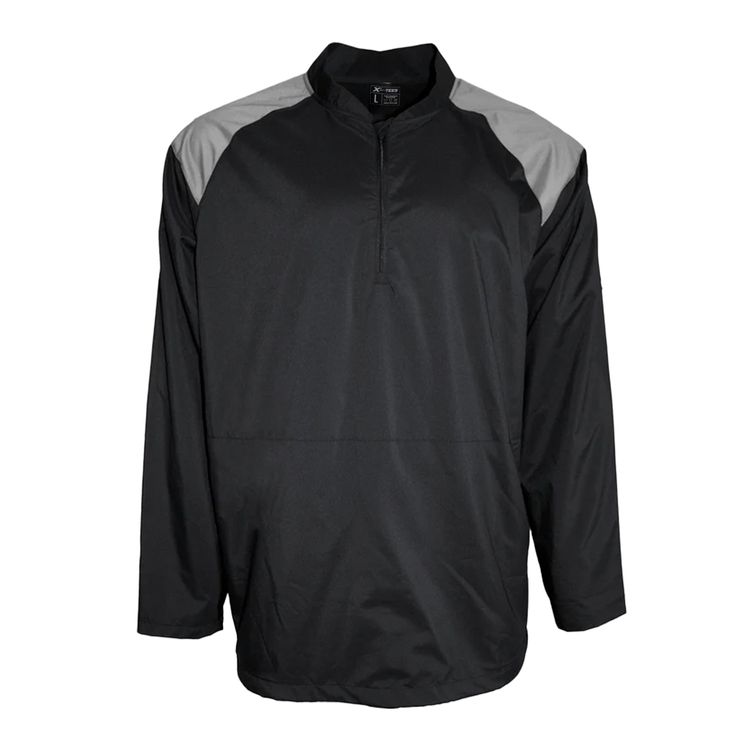 Engineered for active movement and all-day comfort, this lightweight long sleeve cage jacket is made from high-stretch microfiber polyester. It delivers excellent moisture-wicking and anti-microbial performance to keep you dry and fresh. The design features graphite contrast shoulder panels, a stand-up collar, and a 1/4 zip with garage for added ventilation. Practical elements like zippered side access, adjustable waistband, and dual pockets offer convenience and functionality, while UPF 50+ protection and a tear-away label ensure comfort on and off the field.