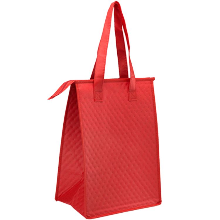 Non-Woven Lunch Cooler Tote Bag, available in many colors! These economy lunch bag measures 9"W x 13"H x 6.5"D and is made of Non-Woven Polypropylene material. This insulated lunch bag also features a large imprint area of 6.00" W x 8.00" H. Built using seamless hot pressing technology, the tote bag is completely leakproof. The tote bag has thermal lining which protects from the heat and has zipper closure with reinforced bottom panel. This bag is reusable and equipped with long handles for easy carrying any items inside the bag. To produce the ideal summer time gift for campers, hikers, and hunters, imprint with your brand.