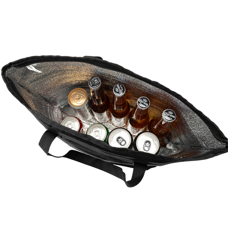 Durable 600D polyester with aluminum coating.