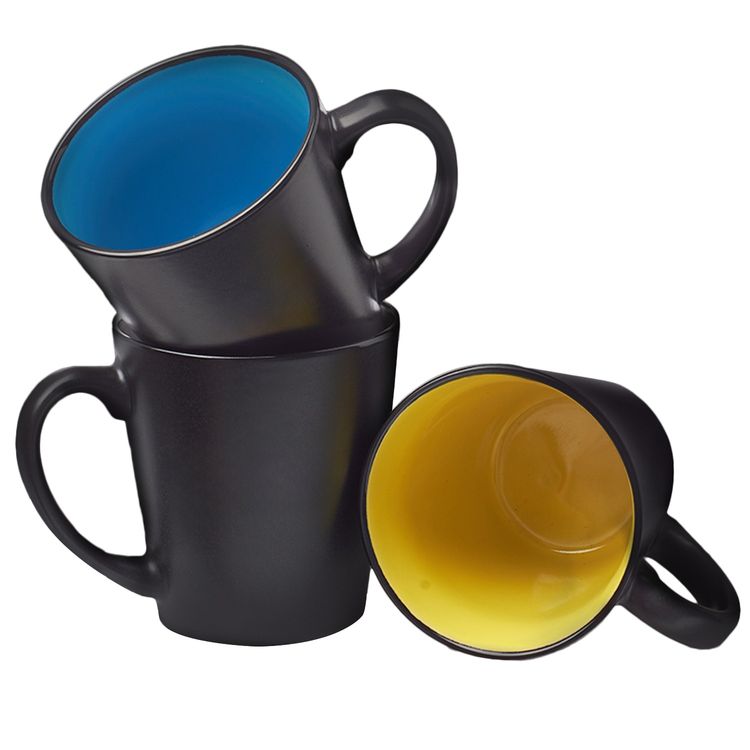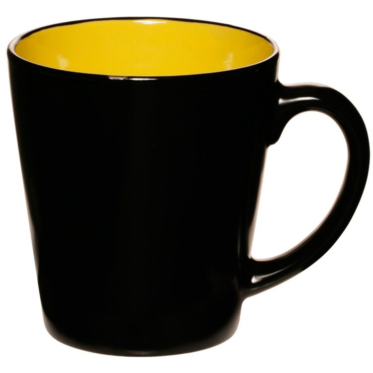 This 12 oz. Drinkware is made from sturdy Ceramic Composite material and features High Curved Grip for Easy Grab-n-go Handling. Measuring 4"H x 3.7"Rim x 2.4"W, this coffee mug also features a large imprint area of 2.50"W x 2.00"H ideal for maximum brand exposure. The mugs come with multiple interior colors to choose from with a glossy black exterior finish.