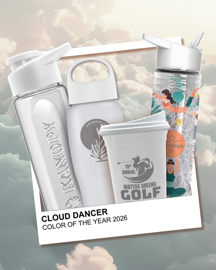 Meet 2026’s Color of the Year-Cloud Dancer is the versatile neutral your promos need. - Drinkware |  Go Big (Without Paying Big!) More imprint space, more color, more brand impact—all at the same great price. - Water Bottles |  Elevate Your Promo with The Boss Embossed Bottle - Drinkware |